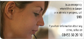 In an emergency, where life is in danger or a crime is in progress, call 999.